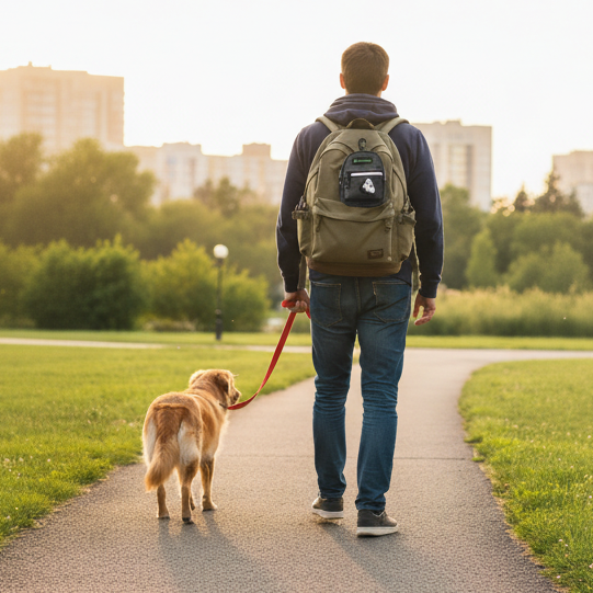 Multi-Use Storage 🎒 – Front zip pocket and inner divider hold treats, keys, or toys without bulk.